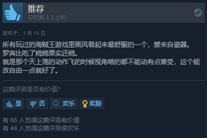 有好评,当然也会有差评。一名玩家表示游戏过于简单,玩了数个小时还是没有任何难度上的改变。另一个玩家则表示《One Piece Odyssey》的开放世界设计过于平凡,机制也不够吸引。当然也出现了每个游戏评价中都会有的游戏无法开启。