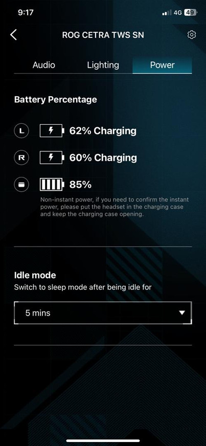操作方面也相对比较敏感,很容易误触控制区,不过也还算是方便,可触控的功能比起一般的的来得多。通过 Armoury Crate应用兼容性大大提高,而且可以在APP内也调整ANC,RGB以及各种音效方面的设置,还可以查看耳机的电池容量。